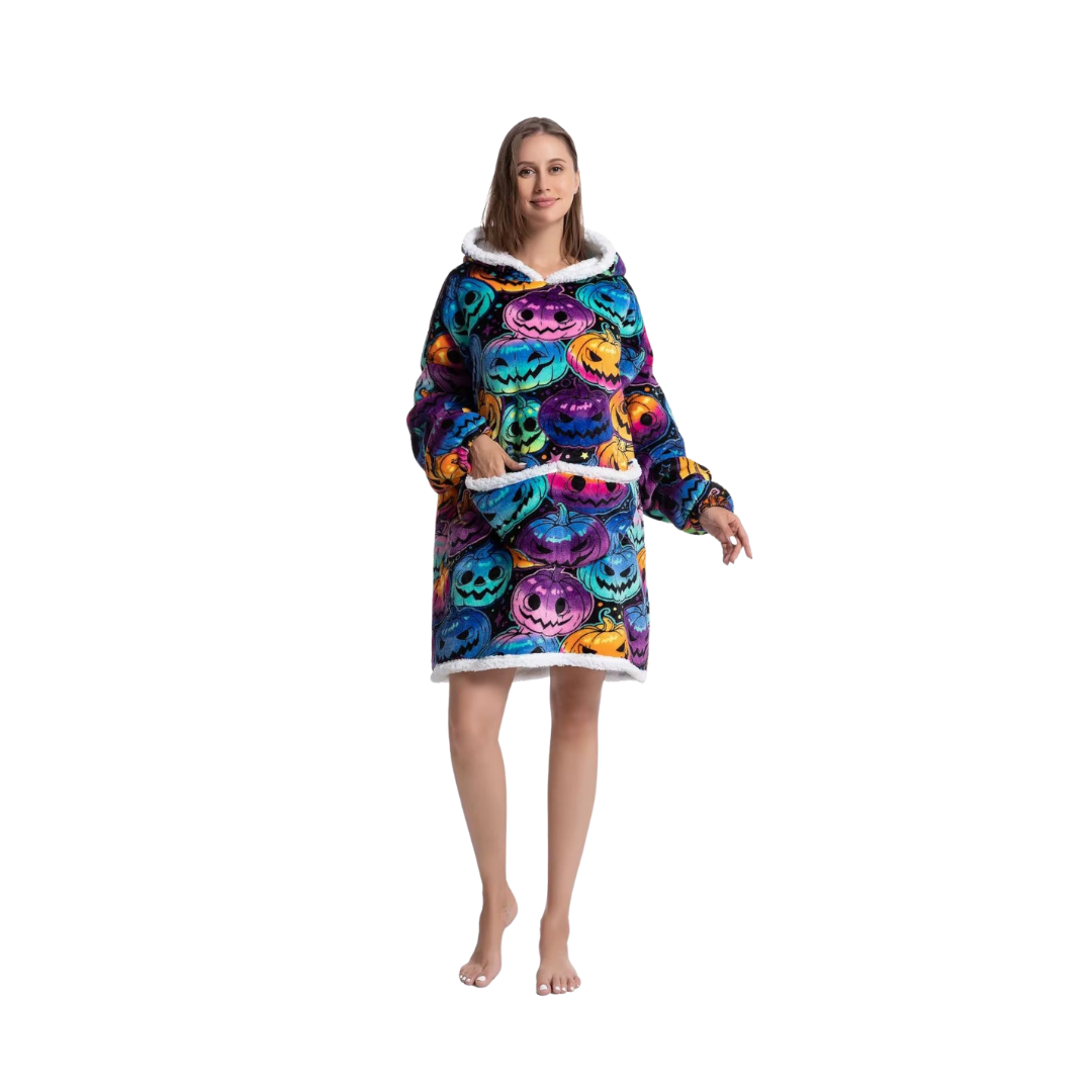 Our Halloween design is soft, oversized, and perfect for cozy nights in. Whether you’re watching scary movies or just love spooky vibes, this blanket hoodie is your new favorite cuddle buddy.